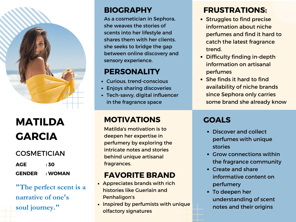 While both our personas, Matilda Garcia and Frank Miller, are in the market for fragrances, their underlying motivations diverge significantly.