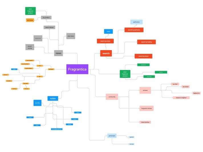 The Fragrantica site map indicates a convoluted structure with scattered content, leading to navigation challenges. Such as Information on scent layers is disconnected from related news and trending topics, which complicates the user’s search for comprehensive fragrance data. This layout can cause user frustration and hinder efficient access to relevant content.