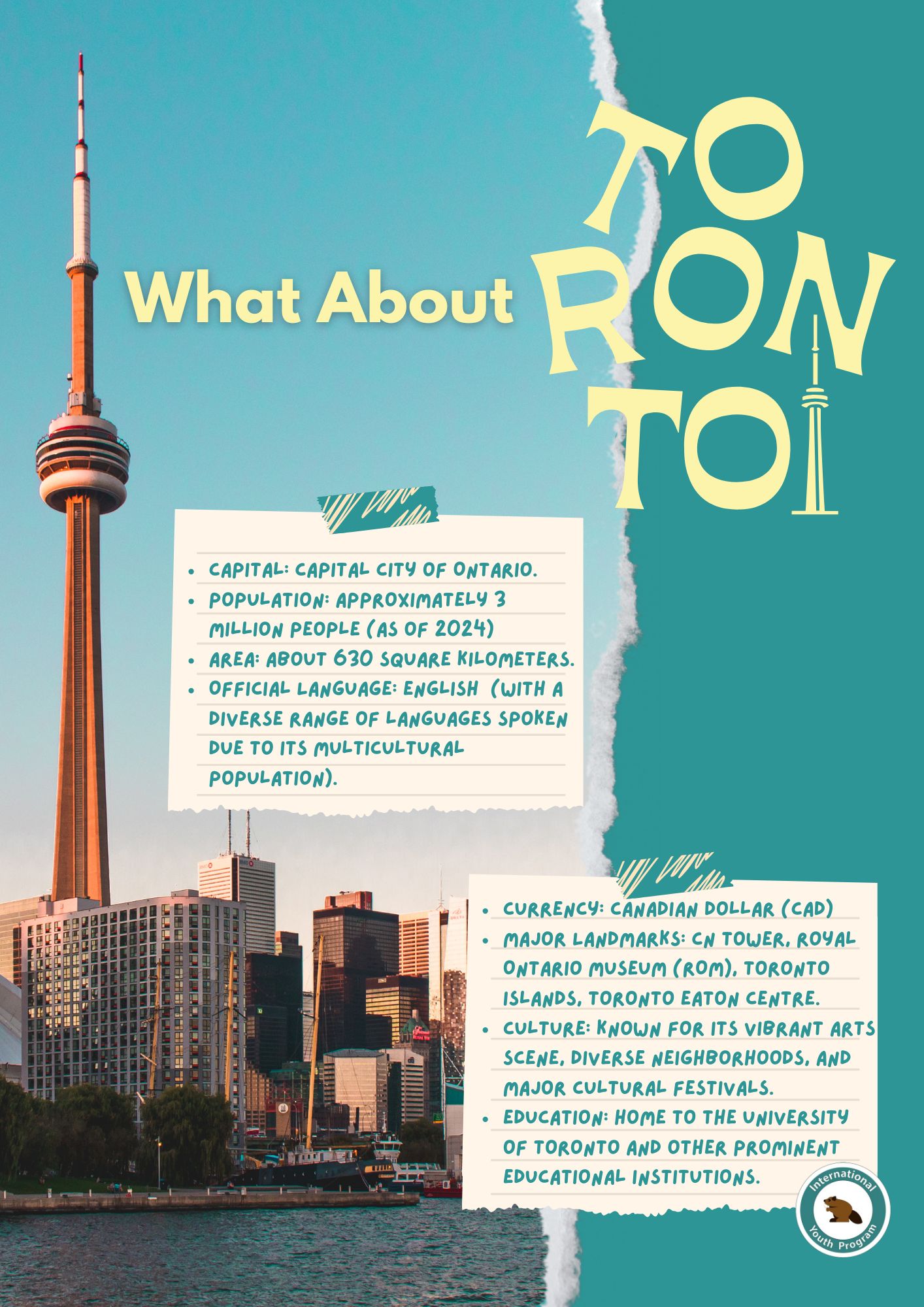 Canada and U of T Introduction: This section offers an overview of Canada, providing a brief introduction to its geography, culture, and history, with images that represent different parts of the country. And IYP’s main summer camp location University of Toronto‘s brief introduction.