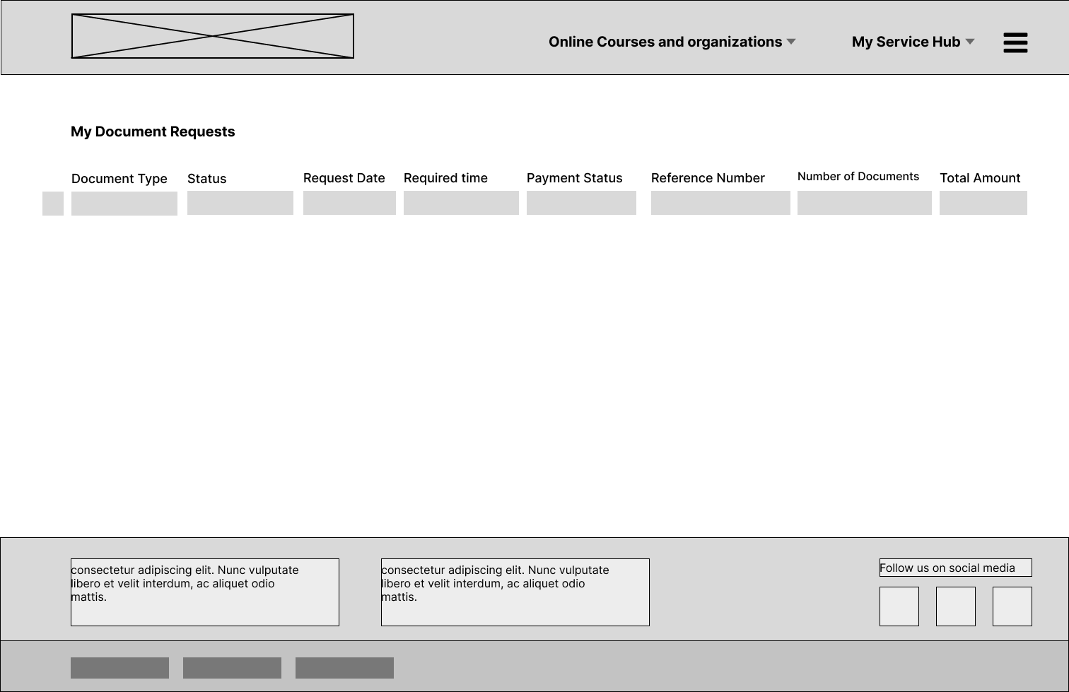 this Lo-fidelity wireframes address key user pain points by ensuring clarity of navigation, offering visual and hierarchical information presentation, and incorporating features for assistance and status tracking. The focus on reducing confusion, improving the request process, and enhancing the user experience is evident, and these wireframes lay a strong foundation for the further development of the TMU student portal.