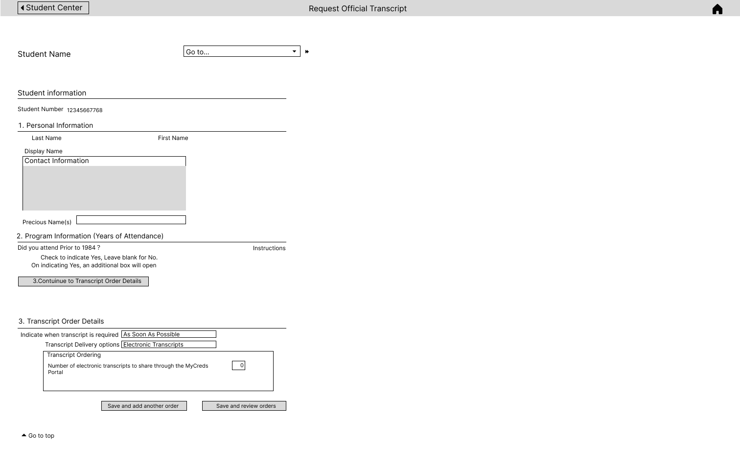 - Some form fields appear to be optional or conditional ( ‘Did you attend prior to 1984?’), but it’s not clear how the user should interact with these unlike the other wireframe.